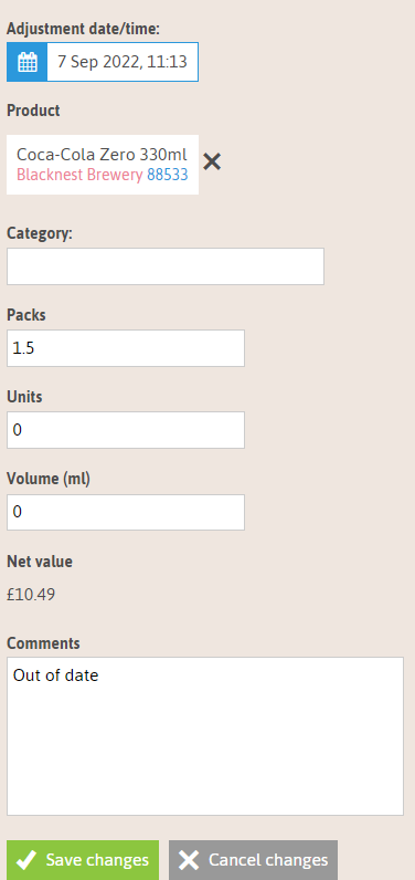 - Adjustment date/time – be as accurate as you can as this helps adjust your stock count