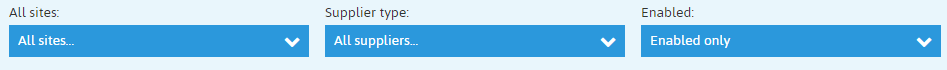 ![]() | Search functions to filter by suppliers available on a site basis, supplier type and whether they are enabled or disabled. |